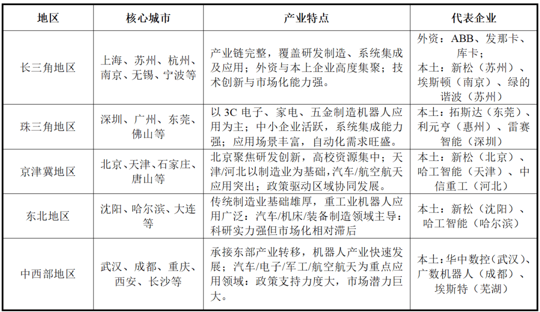 因为工业机械人存正在庞大的市场潜力和成长空间,各地纷纷将工业机械人财产做为制制业转型升级的主要抓手,鼎力成长工业机械人人。目前,中国工业机械人财产次要分布正在长三角、珠三角、京津冀、东北地域和部地域,各区域按照本身财产根本和劣势,构成了差同化的成长径。长三角和珠三角以高端制制和系统集成为从,市场化程度高。京津冀和东北地域依托保守制制业,沉点成长沉工业范畴使用。部地域通过财产转移和政策支撑,快速成长机械人财产,潜力庞大。
