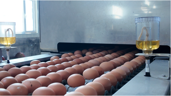 记者看到,地方集蛋系统通过智能传送带,将新颖鸡蛋间接从鸡舍传送至隔邻的分拣车间,这里的“黑科技”更让记者大开眼界传送带上的鸡蛋起首颠末精密喷雾清洗,概况的饲料残渣和粪便被完全冲净,随后进入烘干设备快速干燥。紧接着,鸡蛋被从动翻转,大头朝上划一陈列,再颠末蓝光映照消毒,概况喷上食用油保鲜,最初通过智能检测设备。”孙涛引见道。