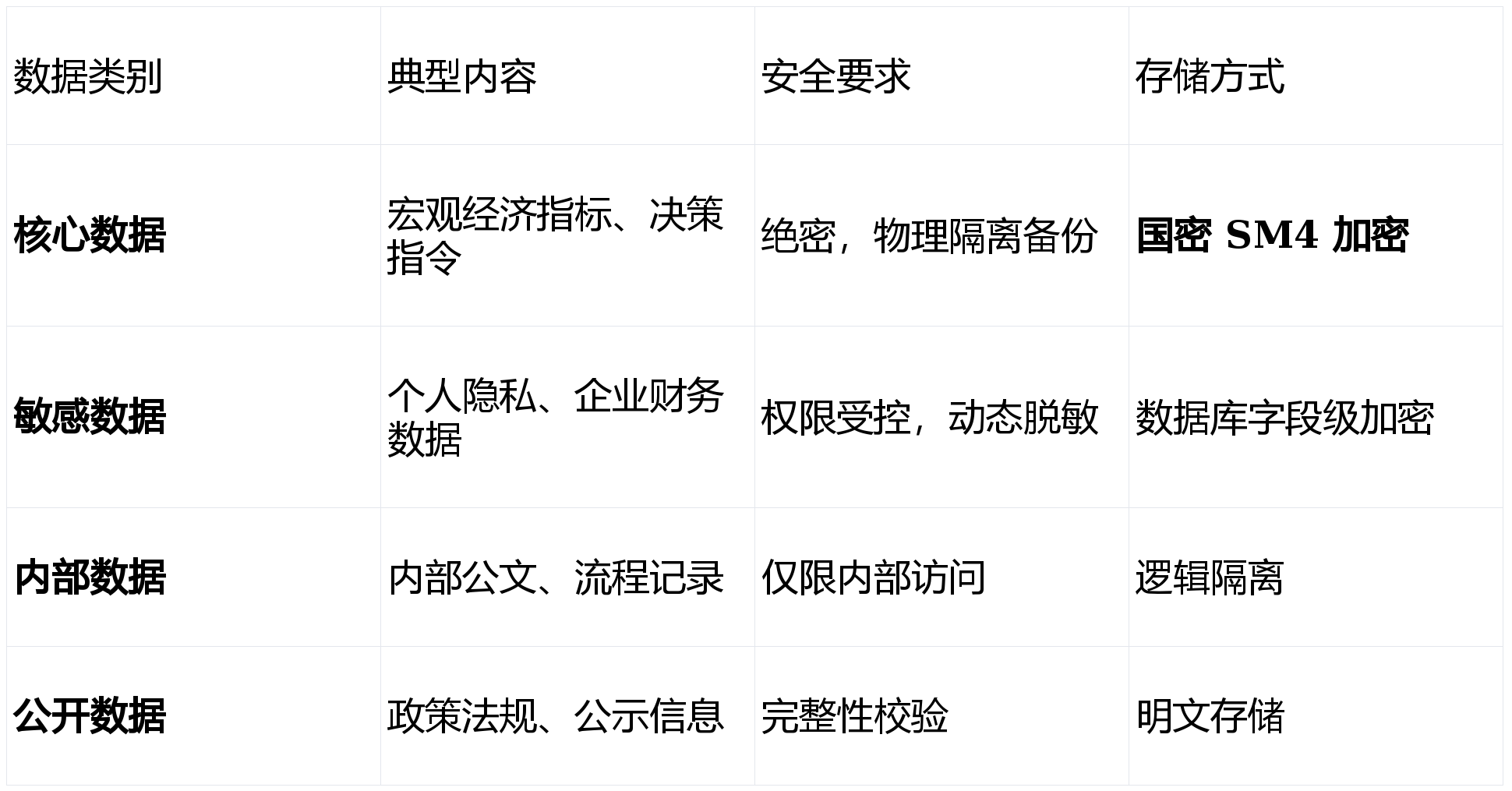 方案根据国标《GB/T 38667-2020》对数据进行四级分类,并分歧强度的办法。